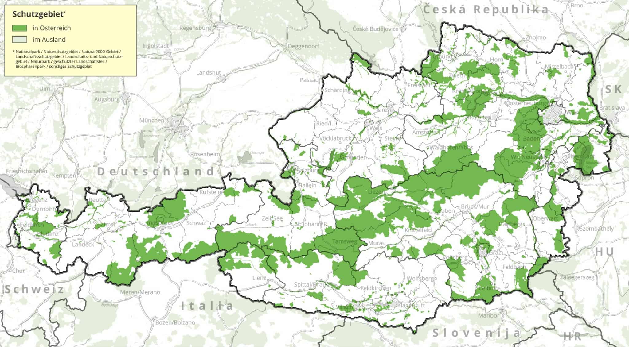 Der Naturschutz in Österreich hat großen Stellenwert. 28.8 % der Gesamtfläche sind im Sinne des Naturschutzes geschützt. Große Teile davon sind Wald und unterliegen damit besonderen Bedingungen für Nutzung und Pflege im Sinne des Naturschutzes und des Erhalts.