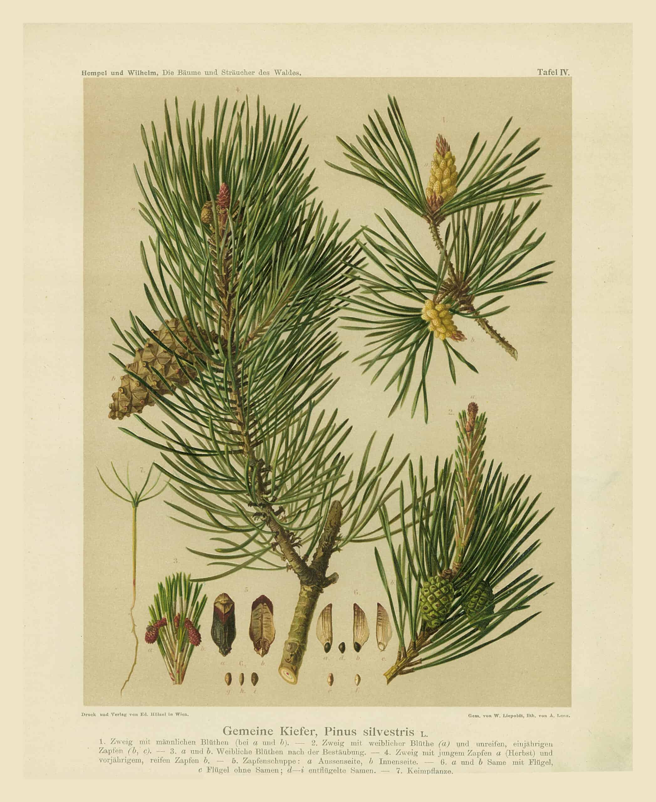 Die Kiefer ist die dritthäufigste Nadelbaumart in unseren Wäldern. Aus dem Kiefernharz wird Teer, Terpentinöl und Kolophonium hergestellt.